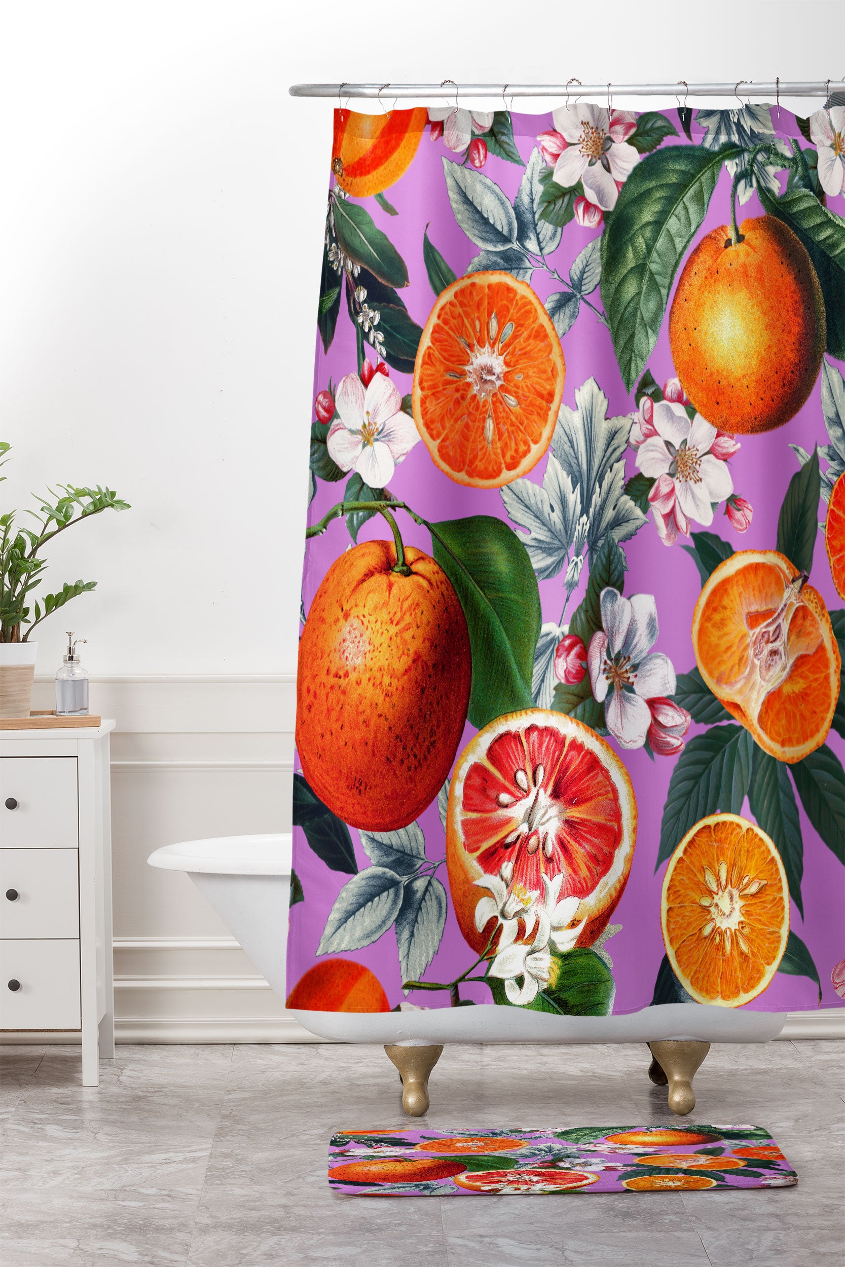 Burcu Korkmazyurek Vintage Fruit Pattern X Shower Curtain And Mat