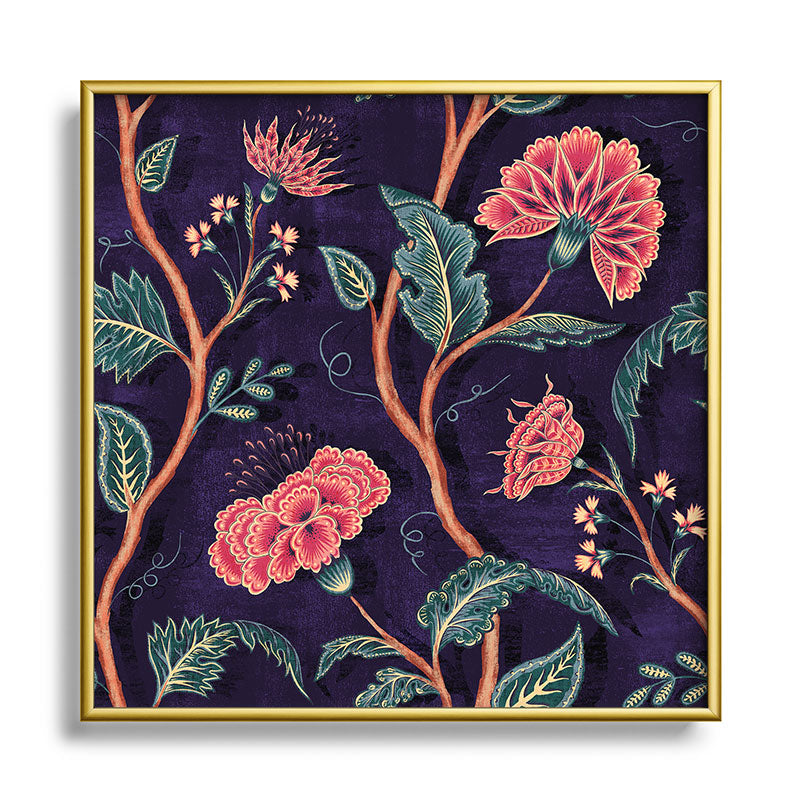 Byre Wilde Indienne Vine Deep Coral Square Metal Framed Art Print