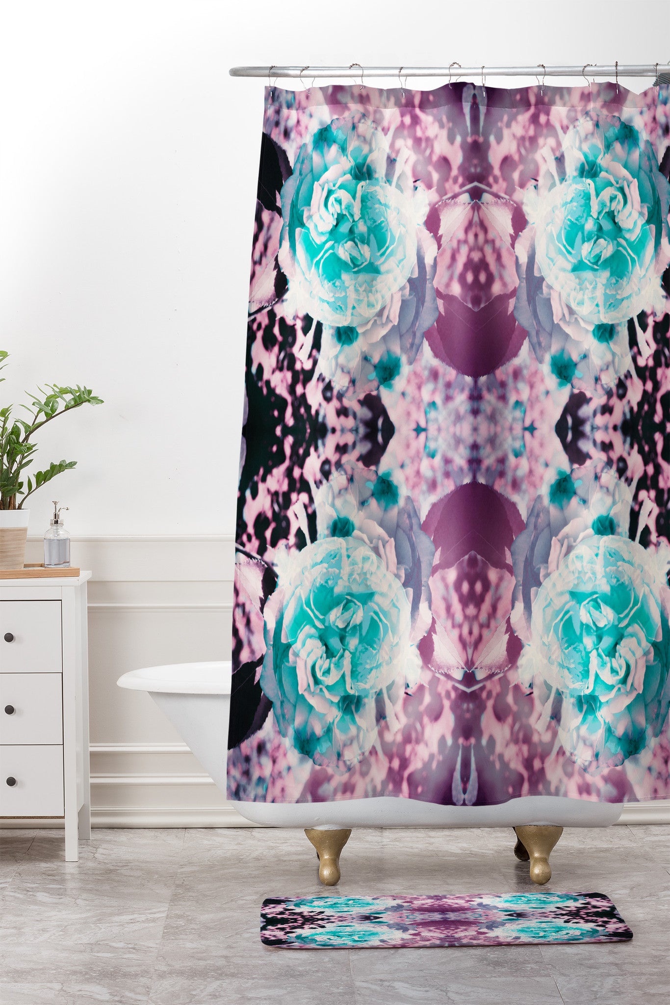 Caleb Troy Black Light Garden Shower Curtain And Mat
