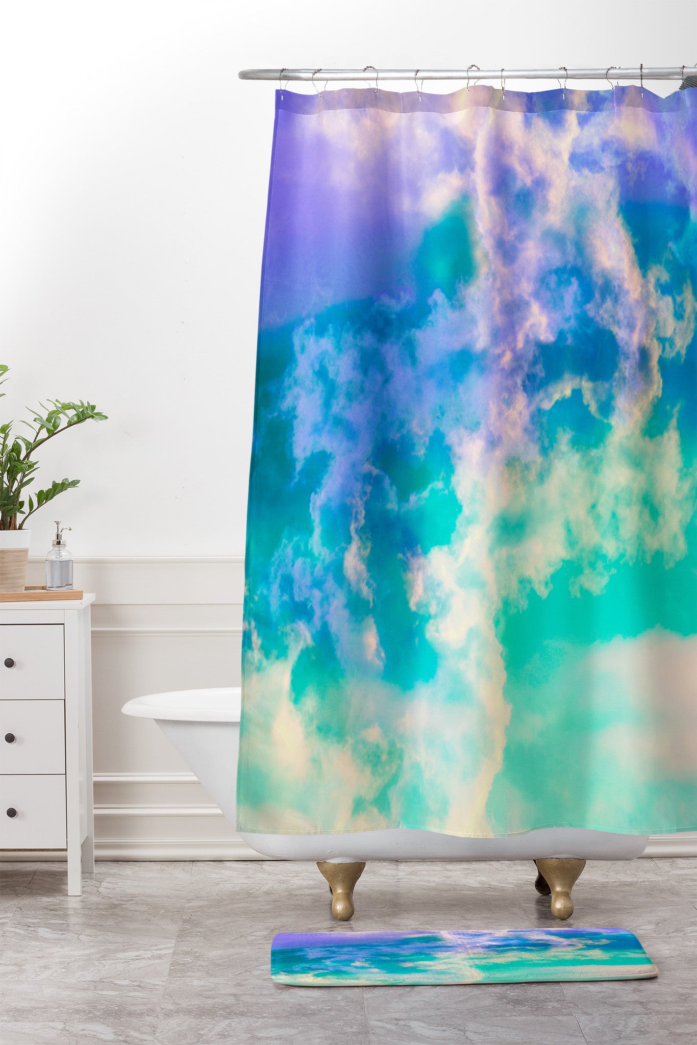 Caleb Troy Mountain Meadow Painted Clouds Shower Curtain And Mat