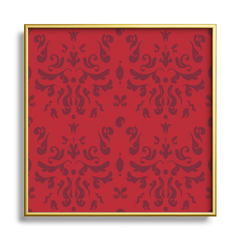 Camilla Foss Modern Damask Red Square Metal Framed Art Print