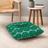 Camilla Foss Wavy Pattern Green and Blue Floor Pillow Square