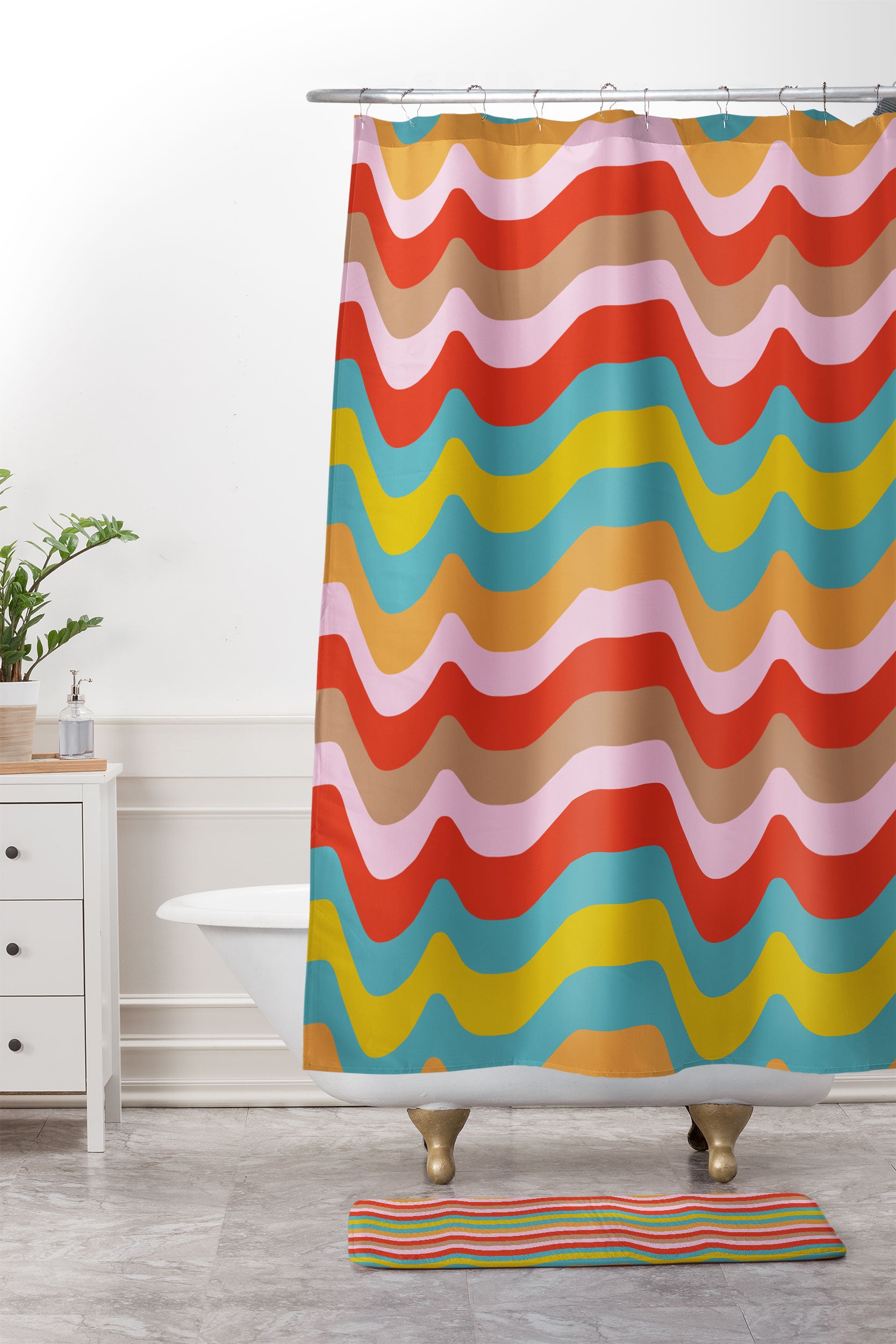 Camilla Foss Wavy Stripes Shower Curtain And Mat