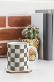 Carey Copeland Checkerboard Olive Green Coffee Mug
