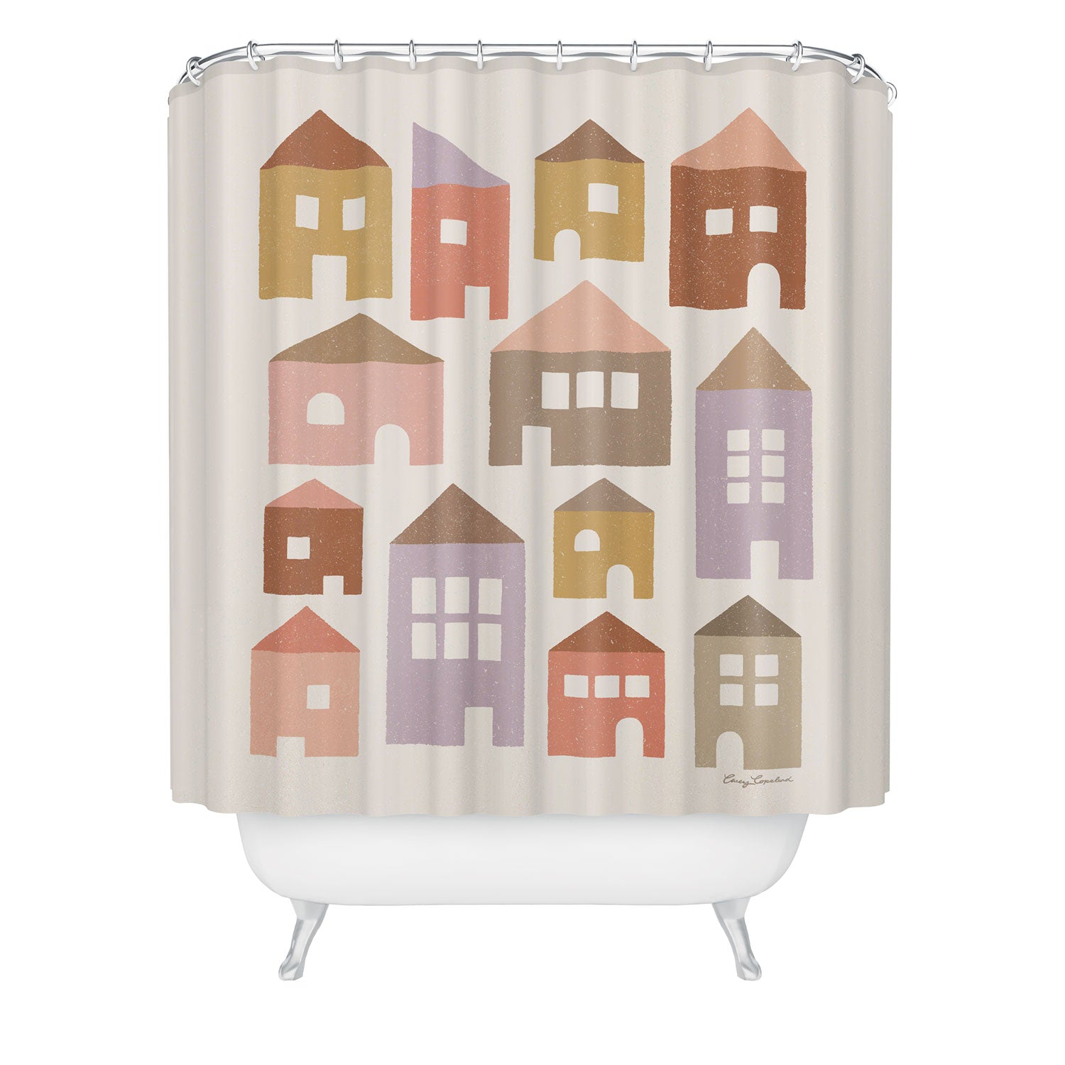 Carey Copeland Happy Houses Earth Tones Shower Curtain
