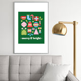 Carey Copeland Merry Bright Christmas Green Metal Framed Art Print