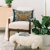 Carey Copeland Moth Floral Gold BlueGreen Oblong Throw Pillow