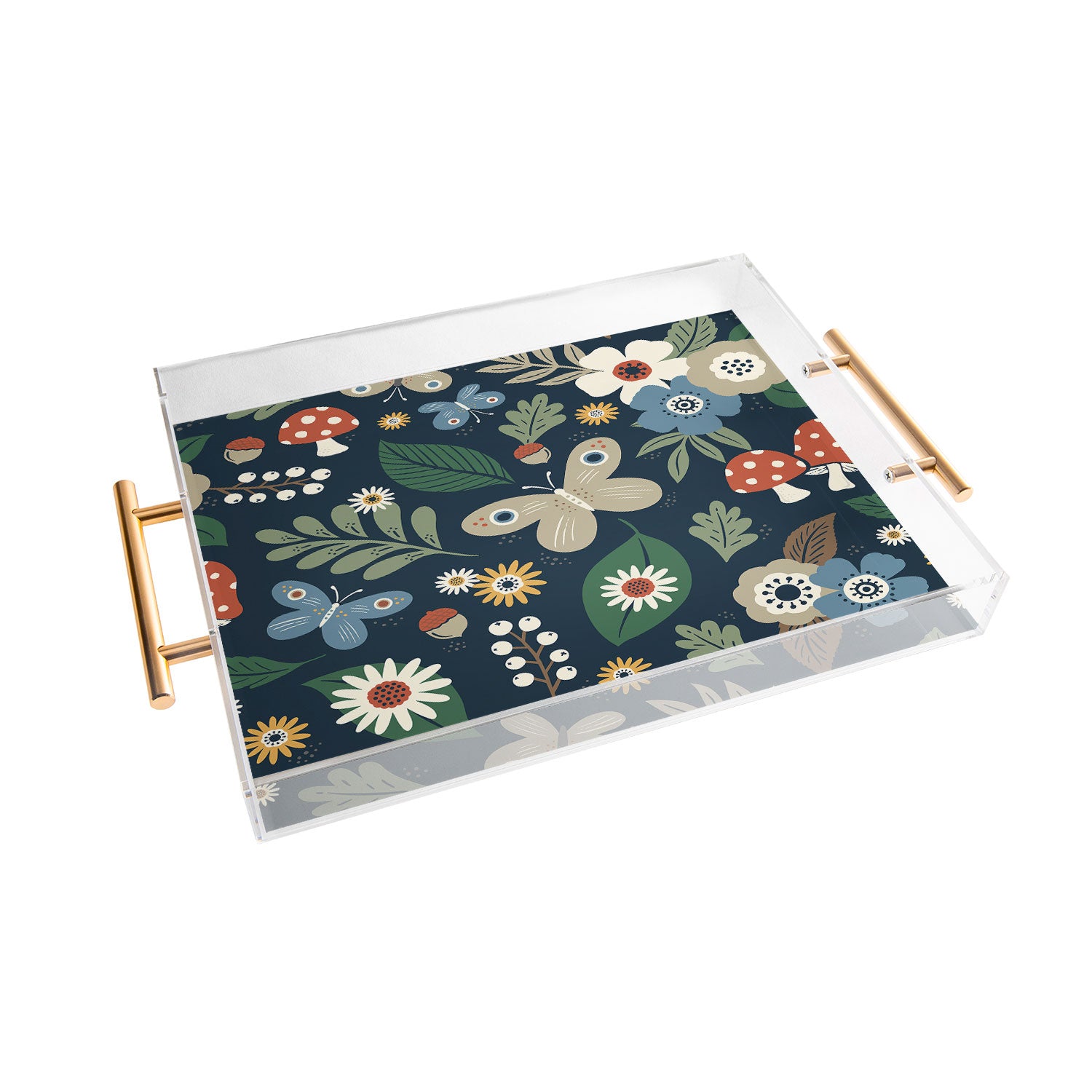 Carey Copeland Woodland Forest Flowers Navy Acrylic Tray