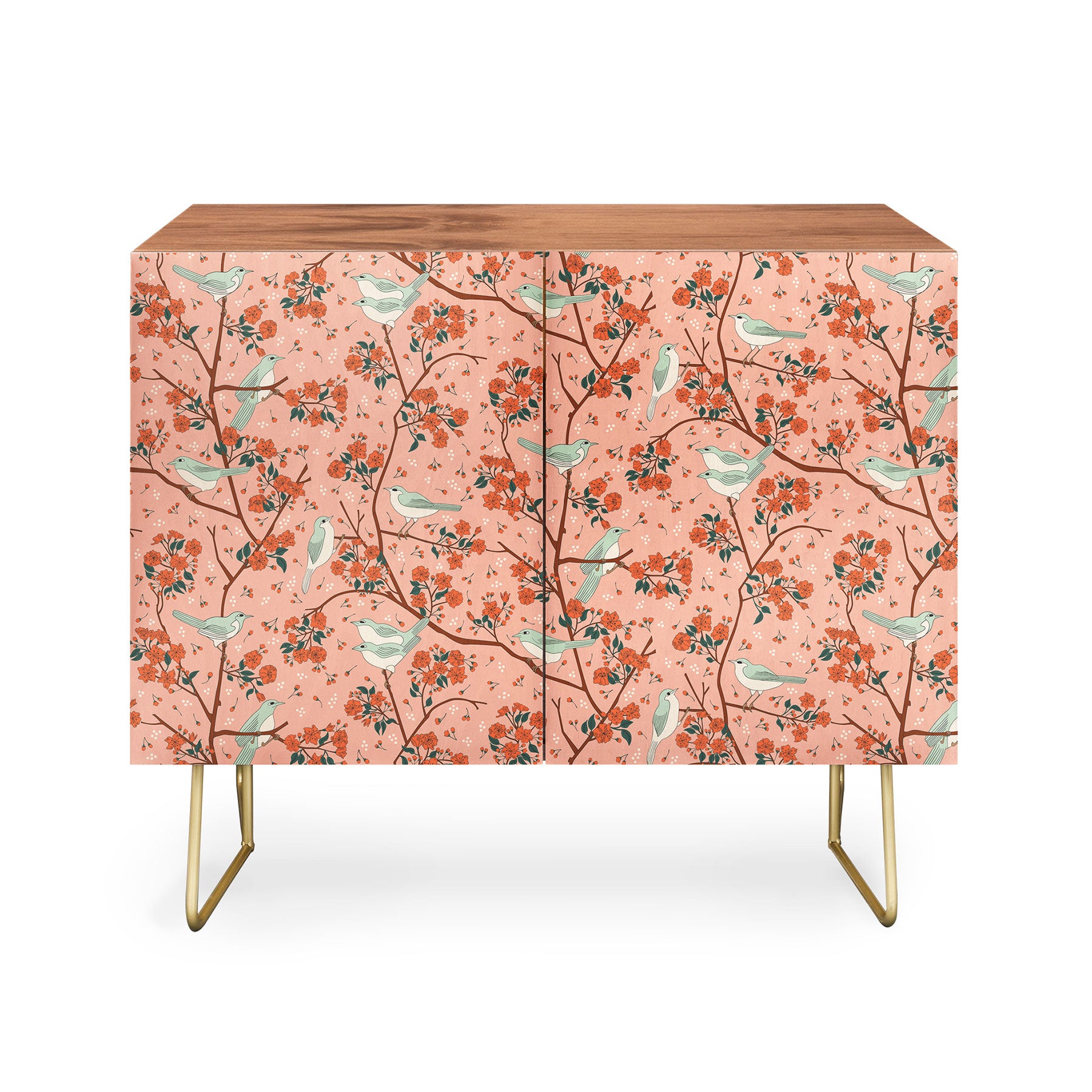 carriecantwell Birds Cherry Blossom Trees Credenza