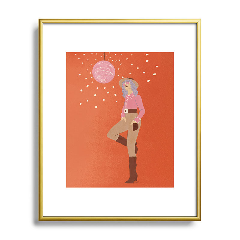 carriecantwell Disco Cowgirl Orange Metal Framed Art Print
