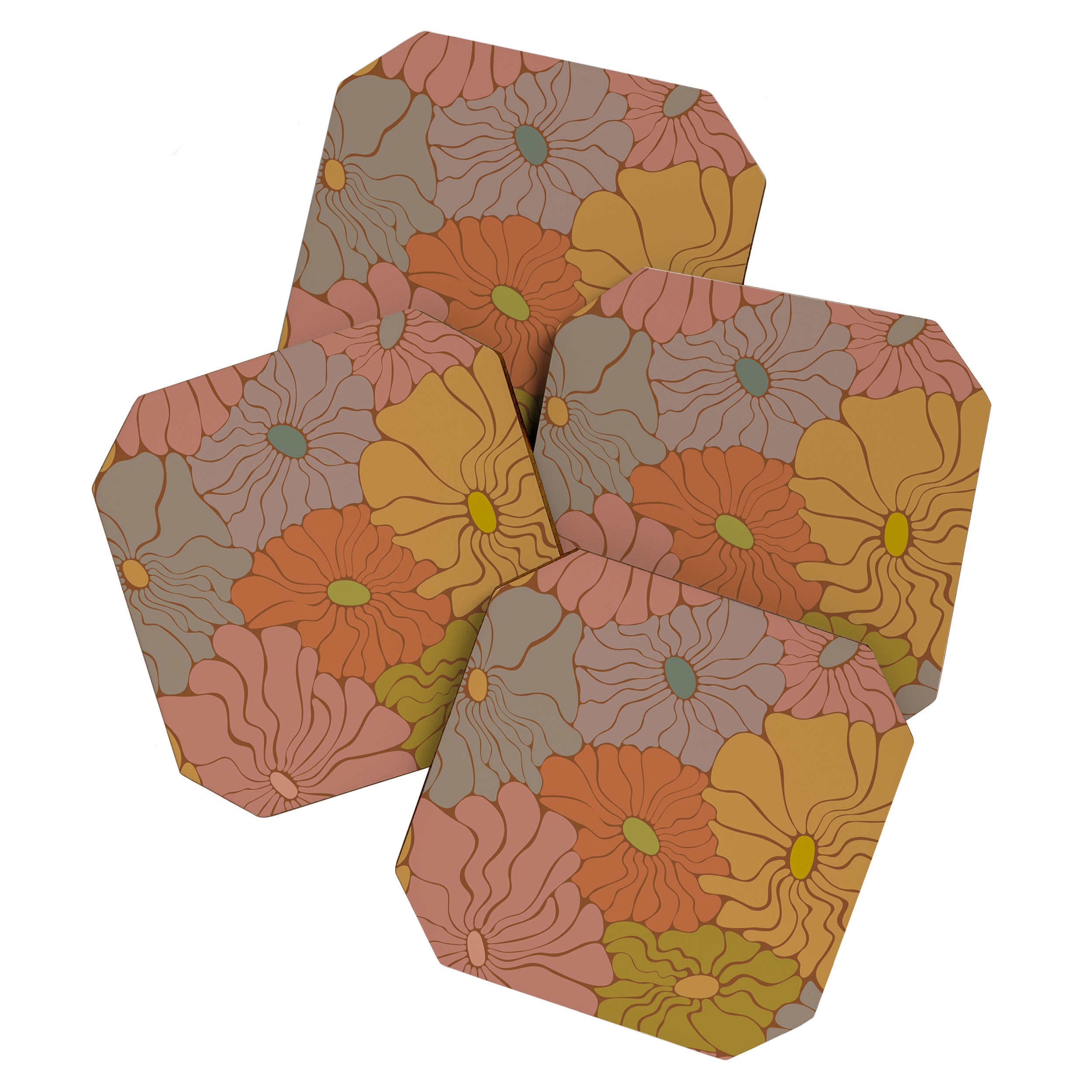 carriecantwell Exotic Groovy Flowers Earthy Coaster Set