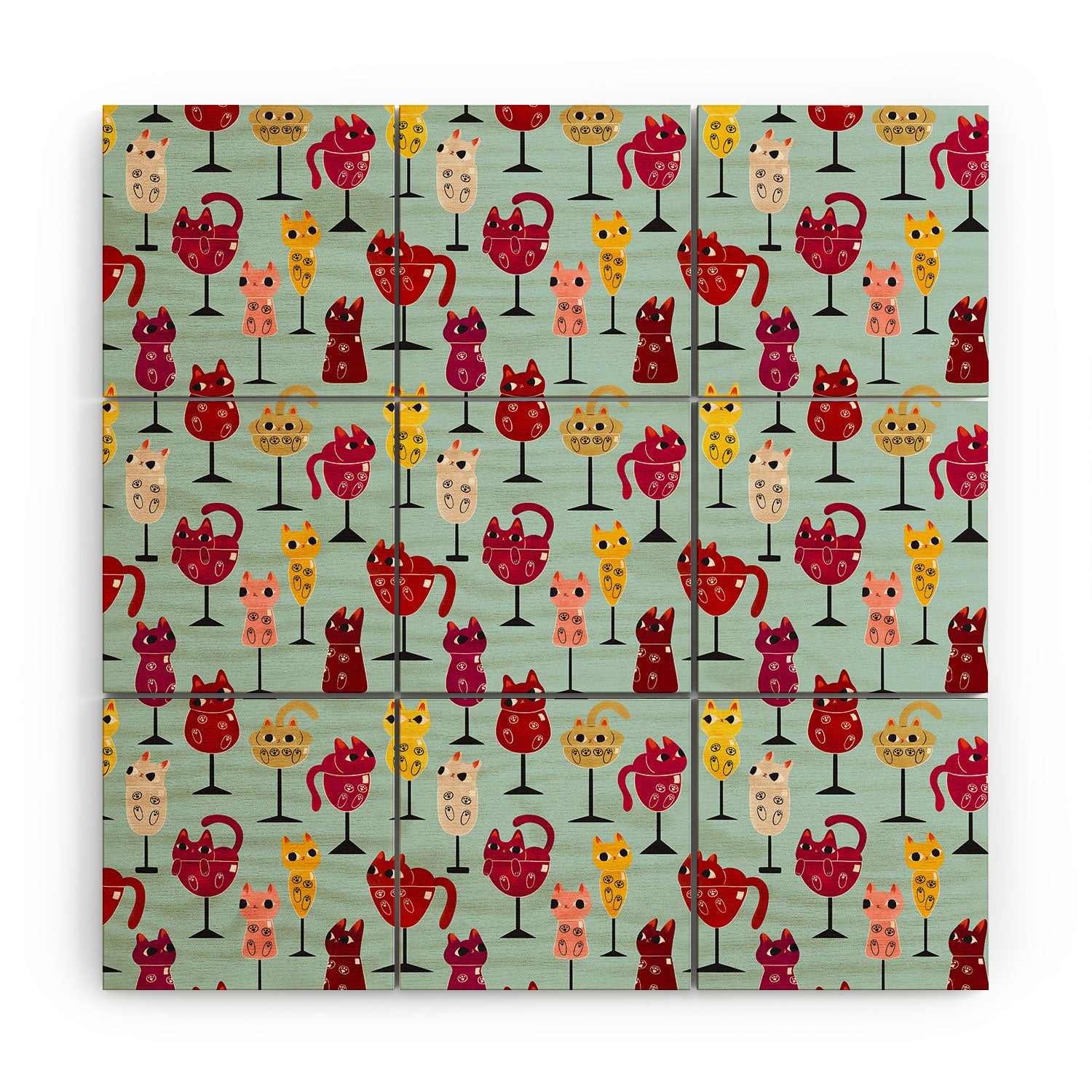 carriecantwell Feline Wine Cats in Wine Glass Wood Wall Mural