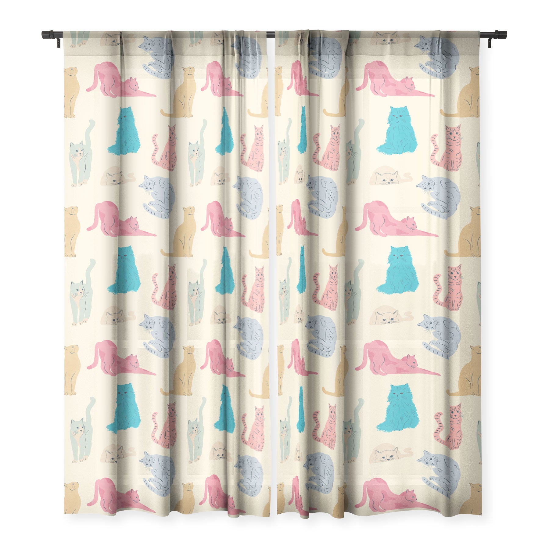 carriecantwell Pastel Cats Pattern Sheer Window Curtain