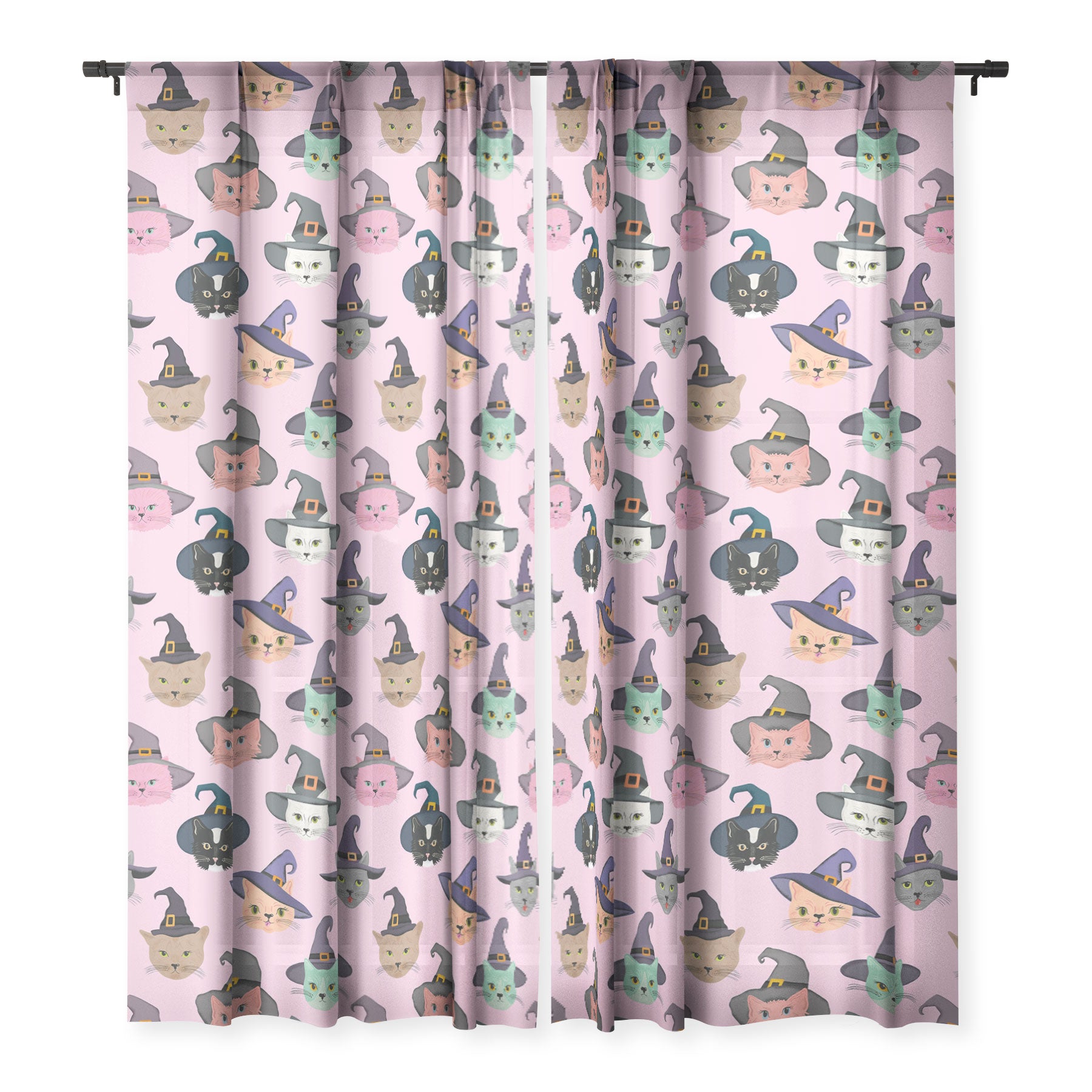 carriecantwell Witchy Kitties Halloween Cats Sheer Window Curtain