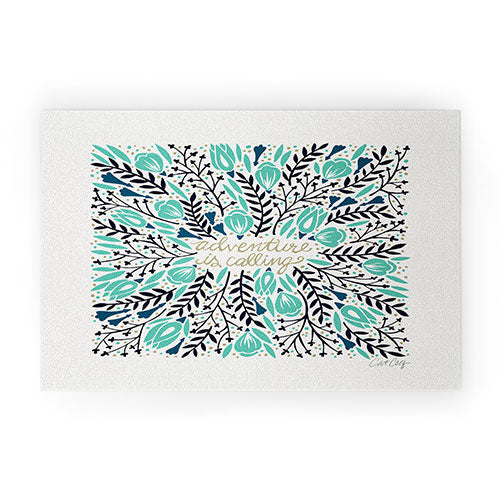 Cat Coquillette Adventure is Calling Navy Mint Welcome Mat