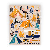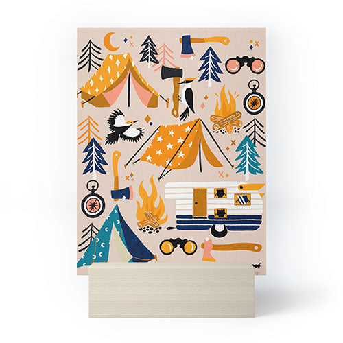 Cat Coquillette Camping Kit Orange Blue Mini Art Print