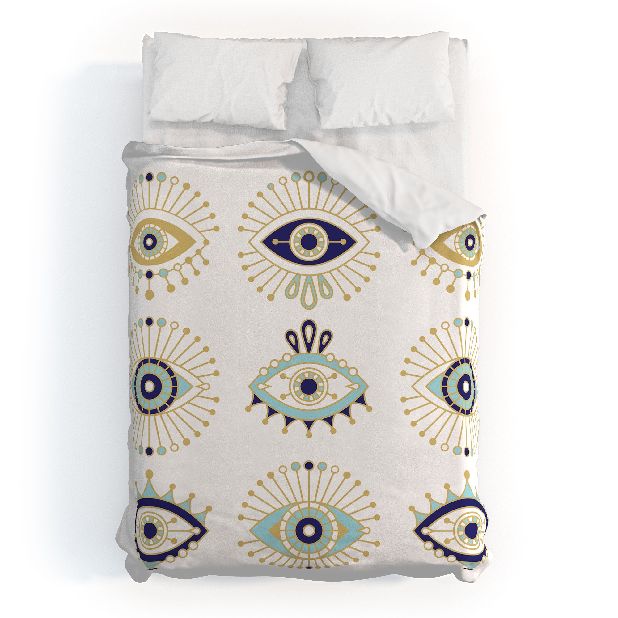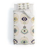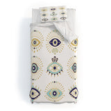 Cat Coquillette Evil Eye Collection on White Duvet Cover
