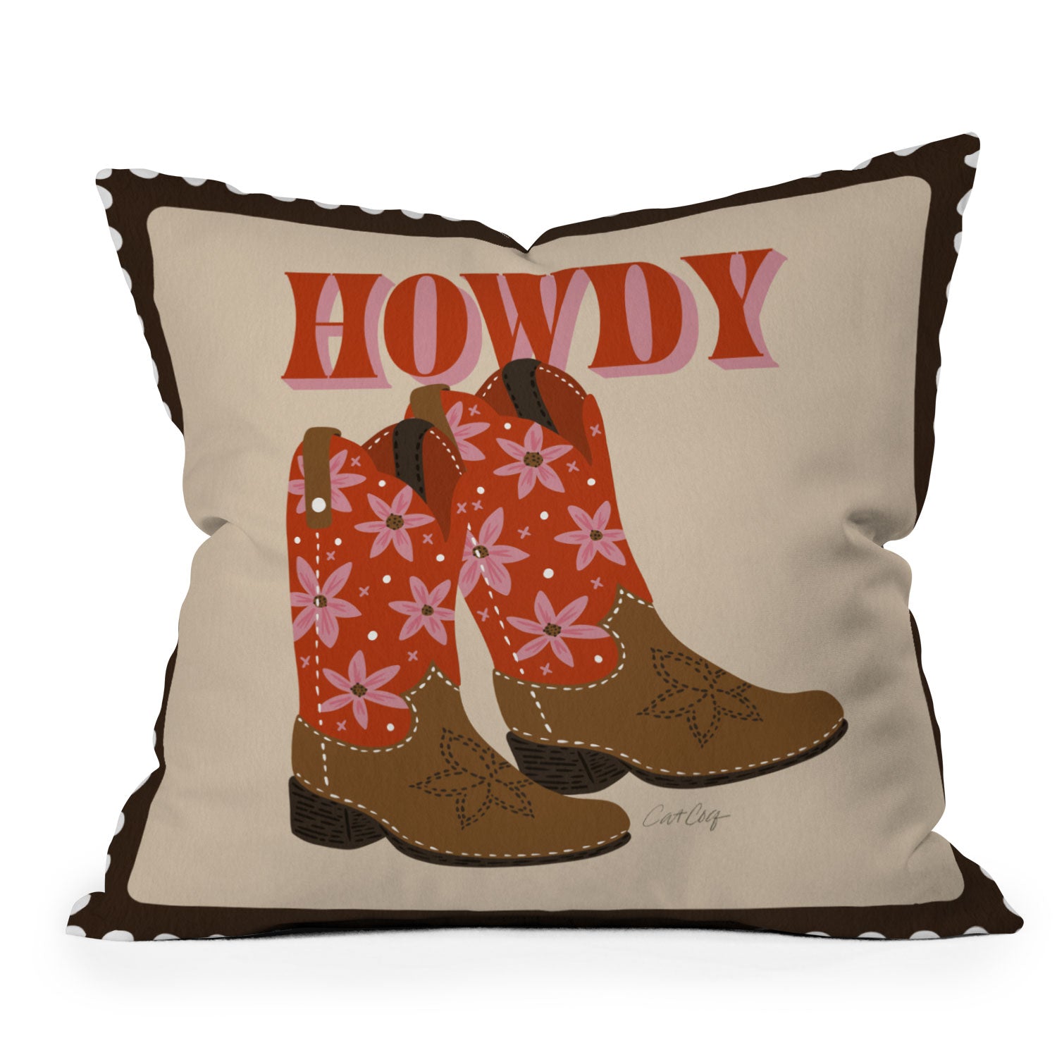 Cat Coquillette Howdy Cowgirl Coral Pink Outdoor Throw Pillow
