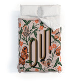 Cat Coquillette Oui Butterflies Coral Green Duvet Cover