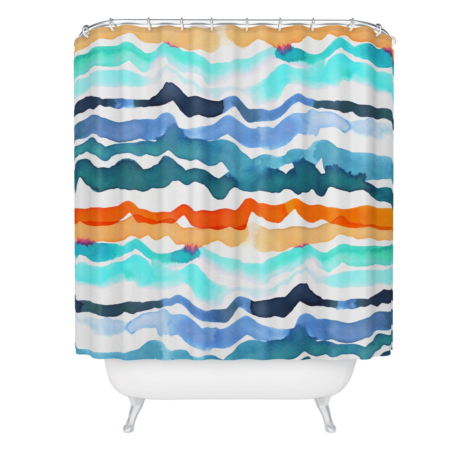 Set the stage. The Deny Designs shower curtain is crafted from 100% woven polyester and makes the perfect backdrop for whatever your bathroom decor may be. Adding some design to your shower curtains is a great way to make a statement in a room known for presenting plenty of design challenges. The buttonhole openings along the top means that you're free to use any curtain rings or hooks you please. And the best part? Every purchase pays the artist who designed it—supporting creativity worldwide.