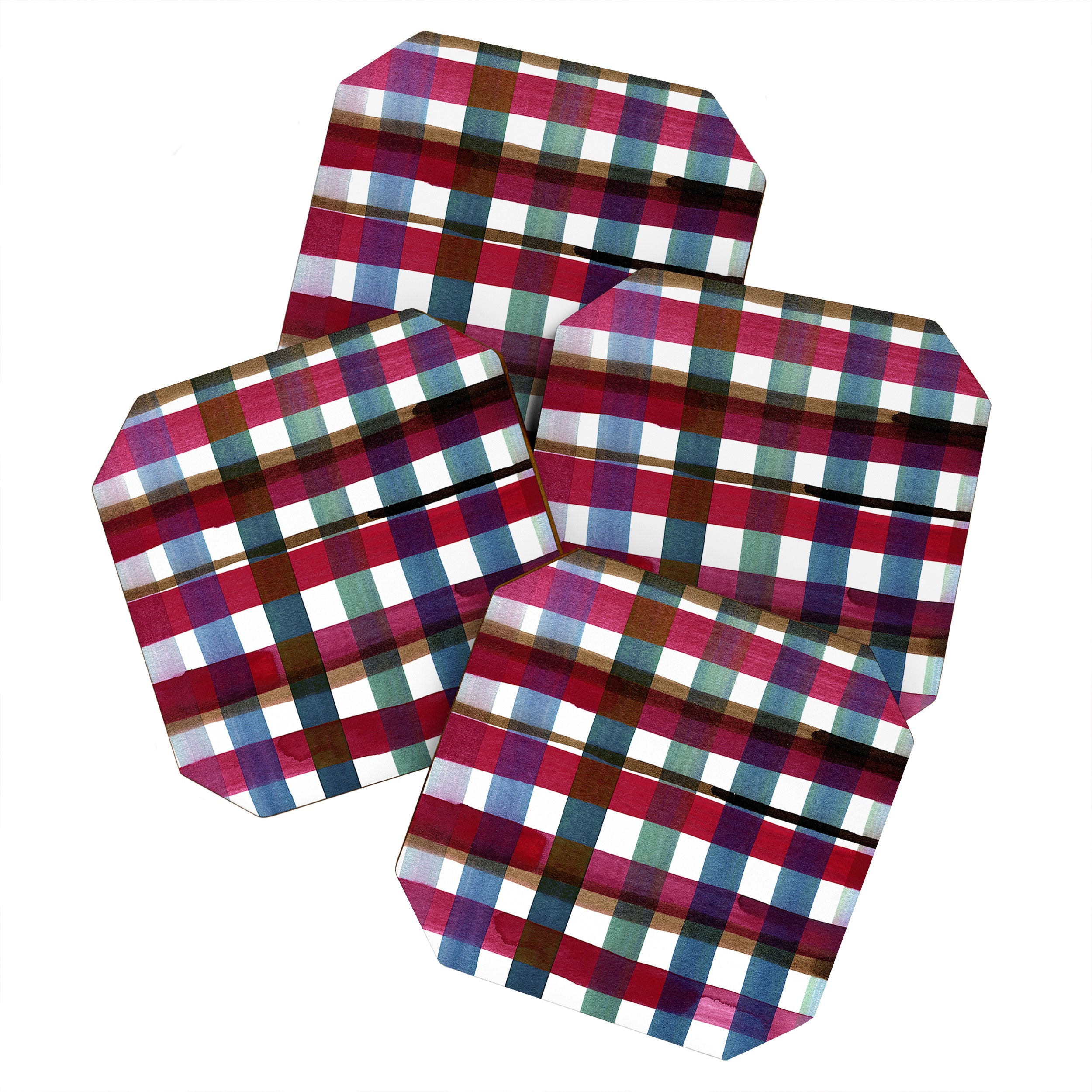CayenaBlanca Modern Christmas Plaids Coaster Set