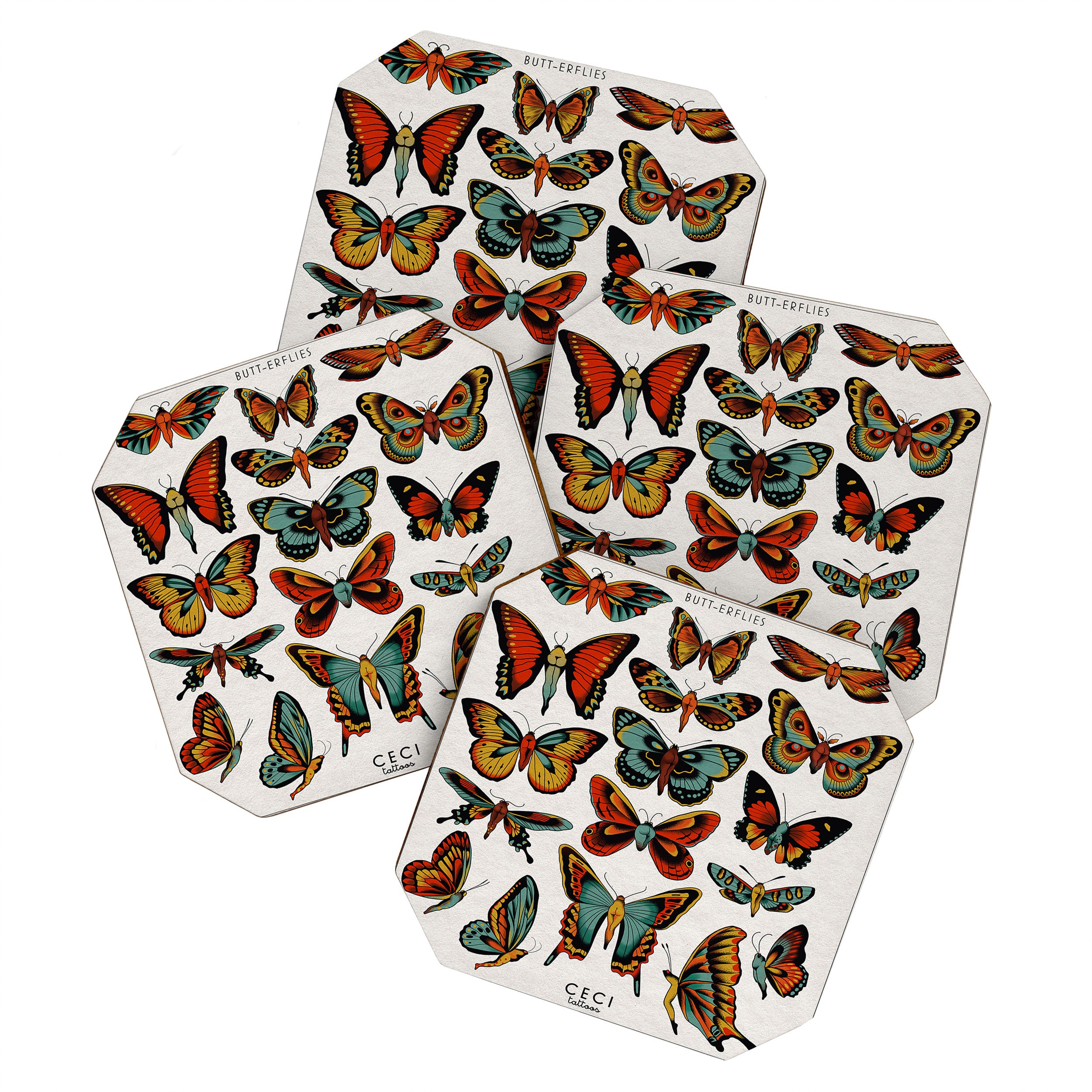 CeciTattoos BUTTerflies I Coaster Set