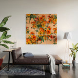ChrissyInk 70s Pastel Floral on pink Wood Wall Mural