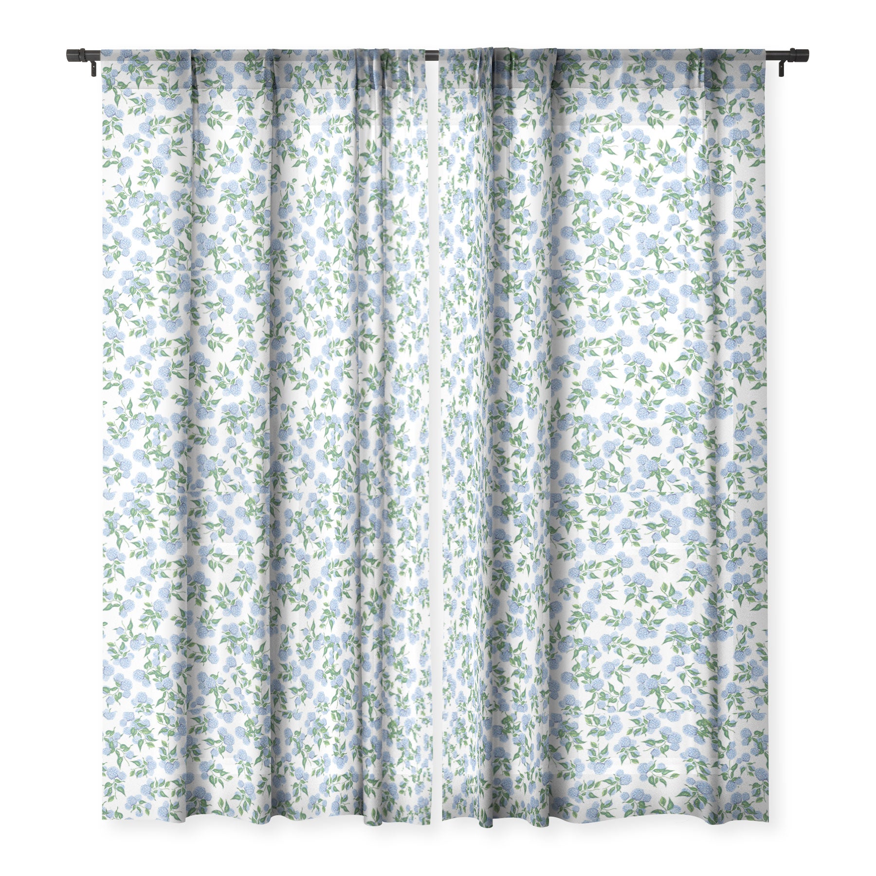 ChrissyInk Hydrangea blue flowers botanicals Sheer Window Curtain