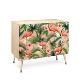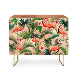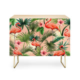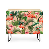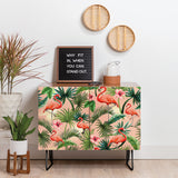 ChrissyInk Pink flamingoes tropical palm Credenza