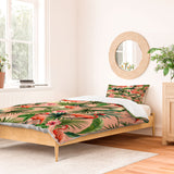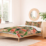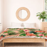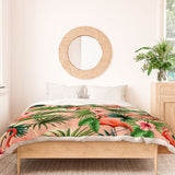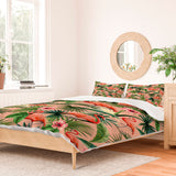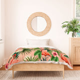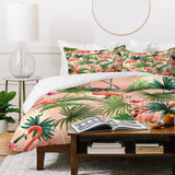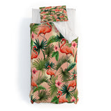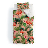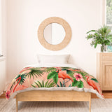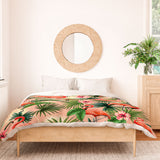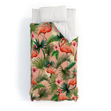 ChrissyInk Pink flamingoes tropical palm Duvet Cover