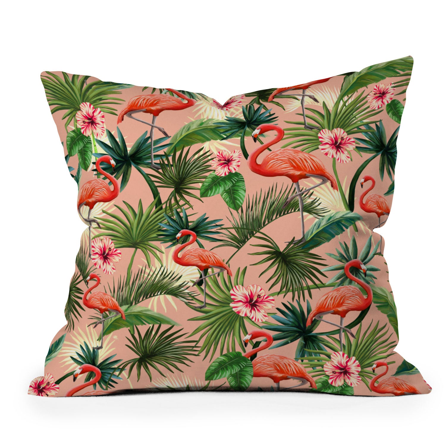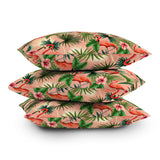 ChrissyInk Pink flamingoes tropical palm Throw Pillow