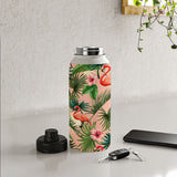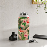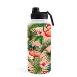 ChrissyInk Pink flamingoes tropical palm Water Bottle