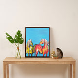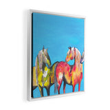Clara Nilles Painted Ponies On Turquoise Art Canvas