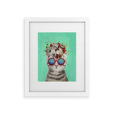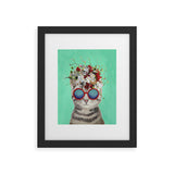 Coco de Paris Flower Power Cat turquoise Framed Art Print