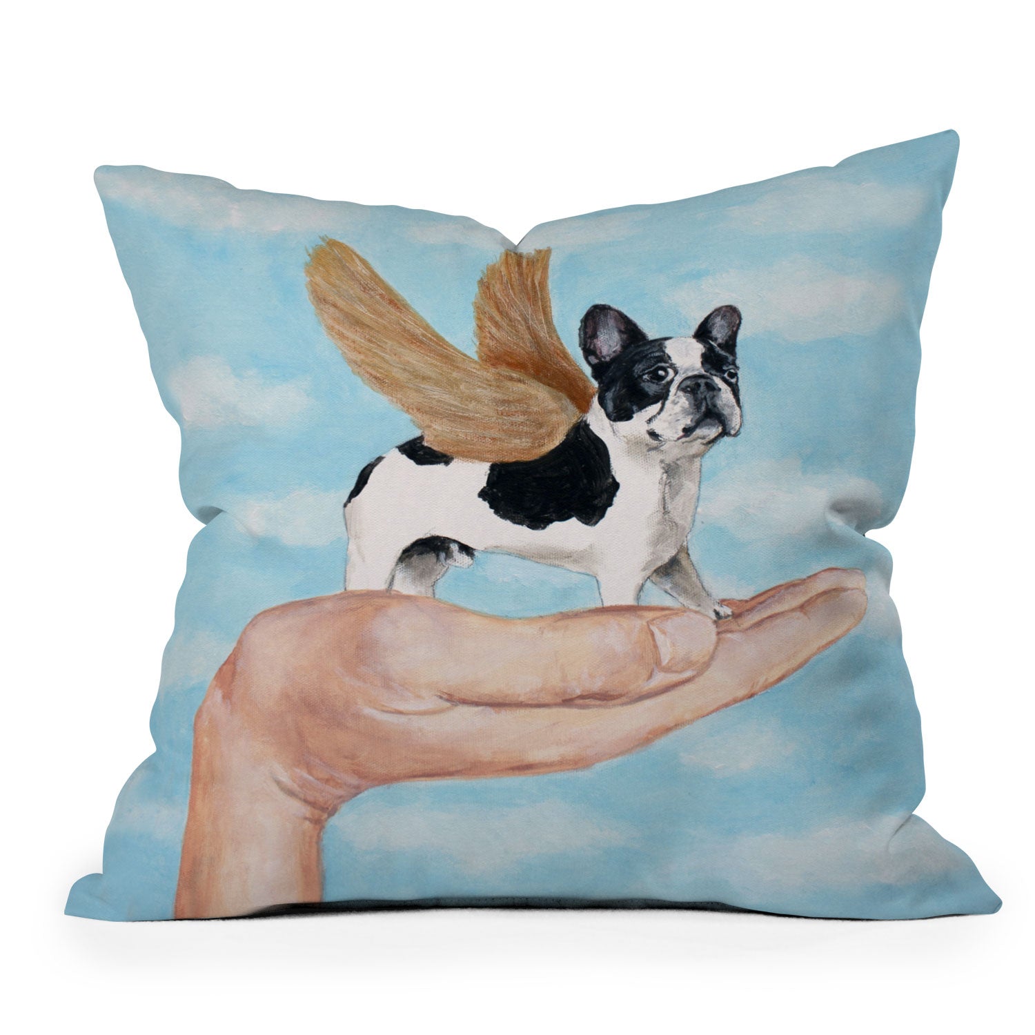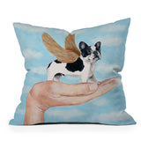 Coco de Paris Frenchie with golden wings Throw Pillow