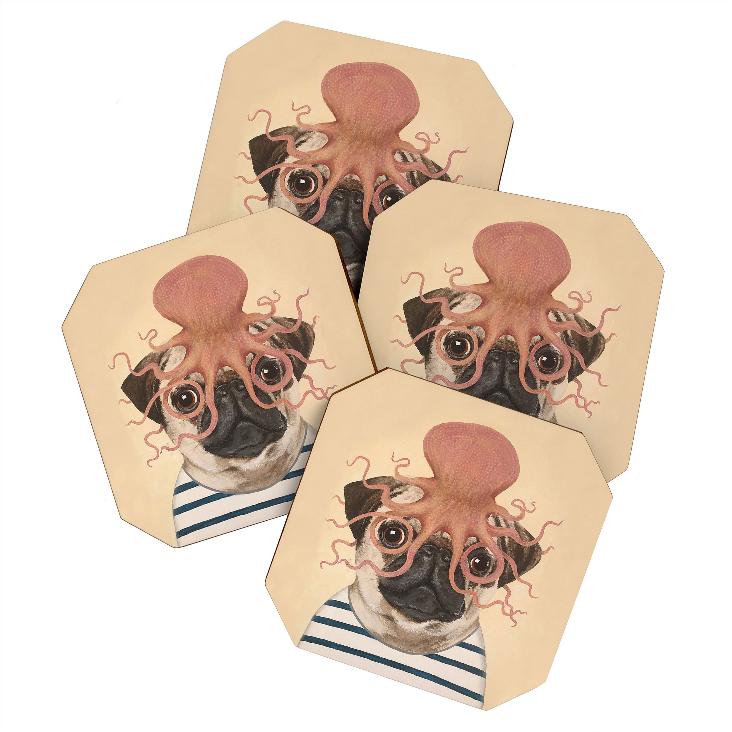 Coco de Paris Pug with octopus Coaster Set