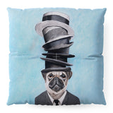 Coco de Paris Pug with stacked hats Floor Pillow Square