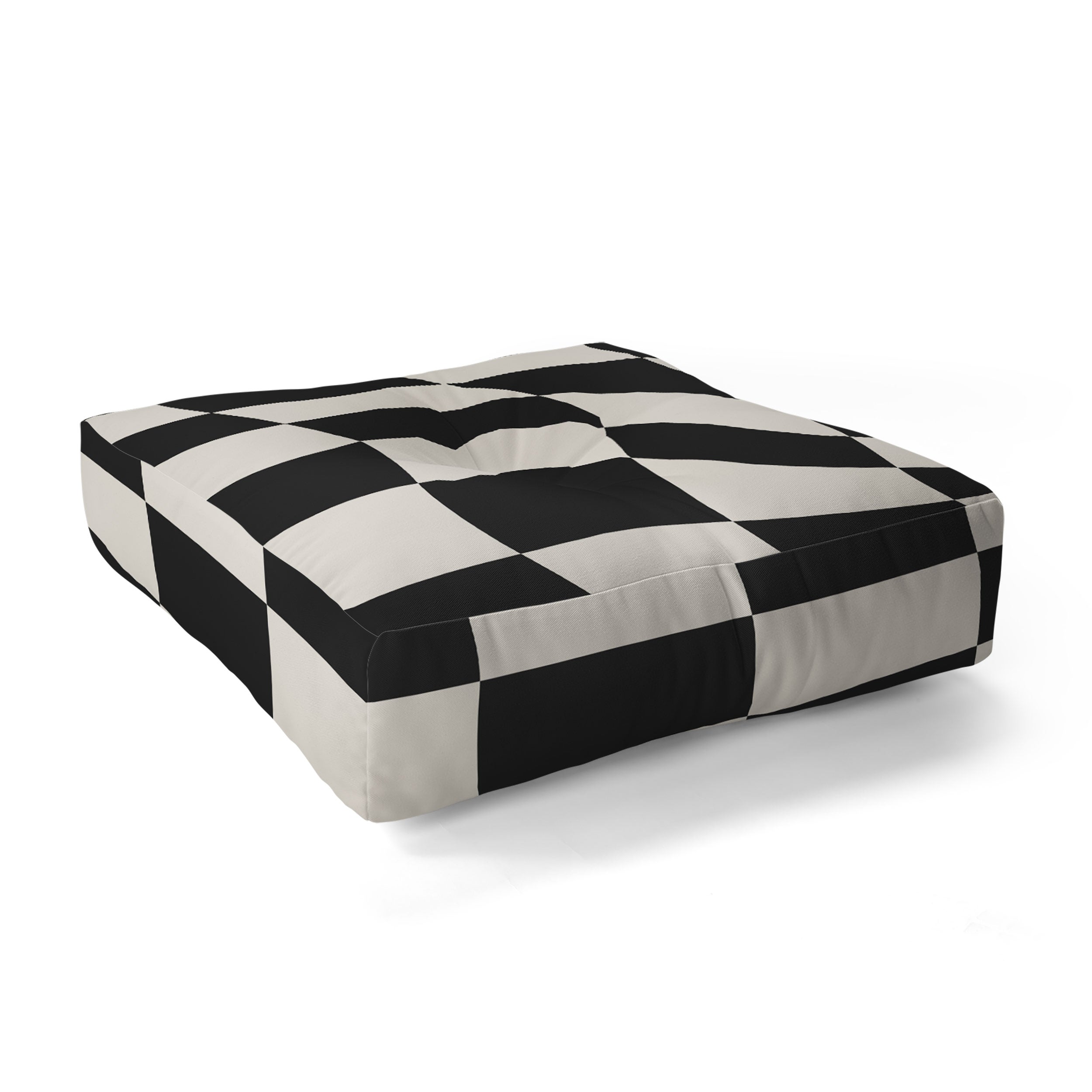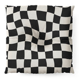 Cocoon Design Black and White Wavy Checkered Floor Pillow Square