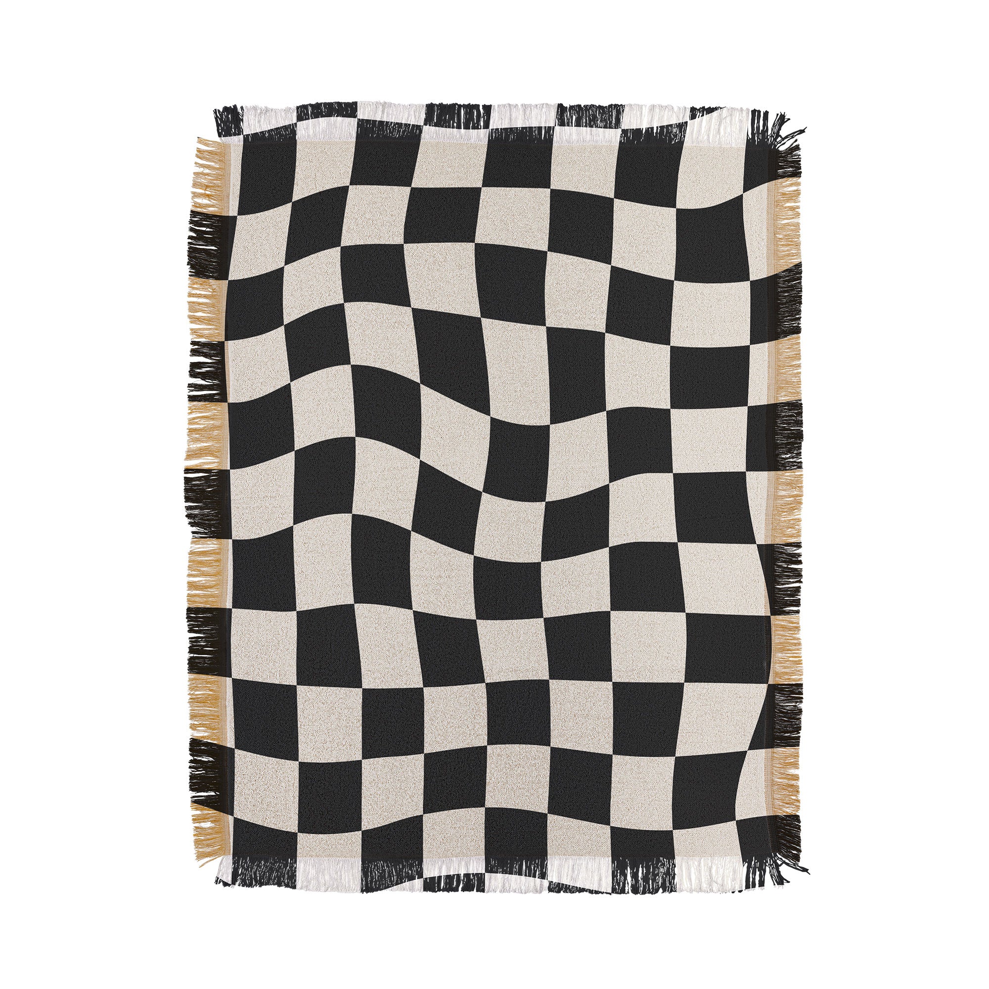 Cocoon Design Black and White Wavy Checkered Throw Blanket