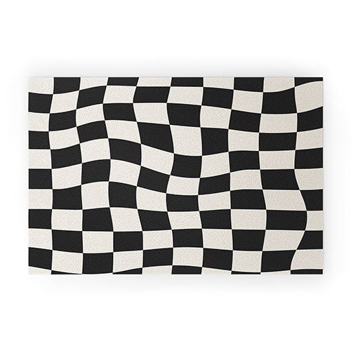 Cocoon Design Black and White Wavy Checkered Welcome Mat