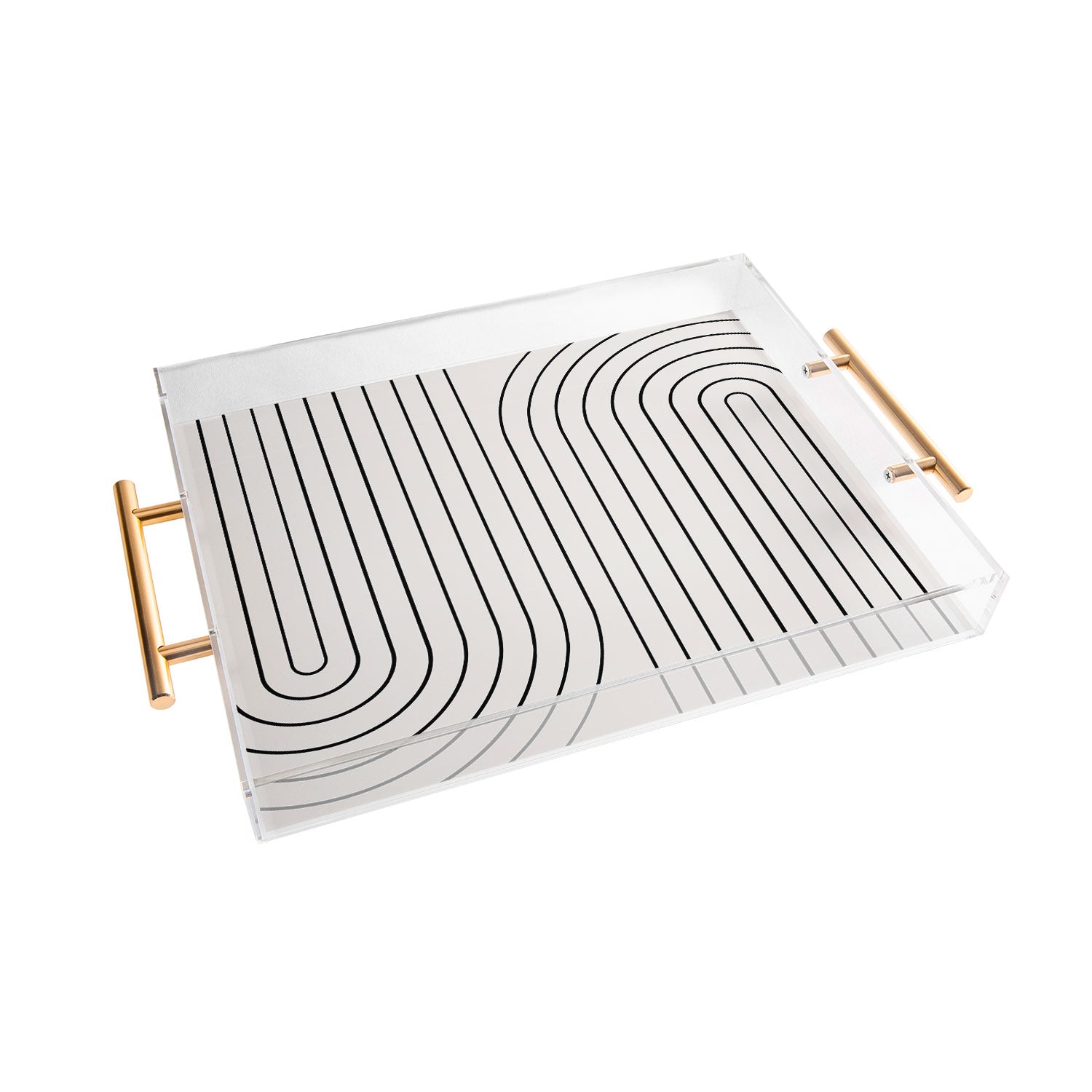Colour Poems Minimal Line Curvature Black and White Acrylic Tray