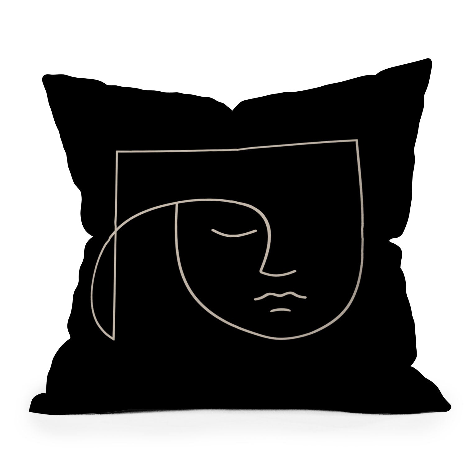 Colour Poems Minimal Line Portrait Black Outdoor Throw Pillow
