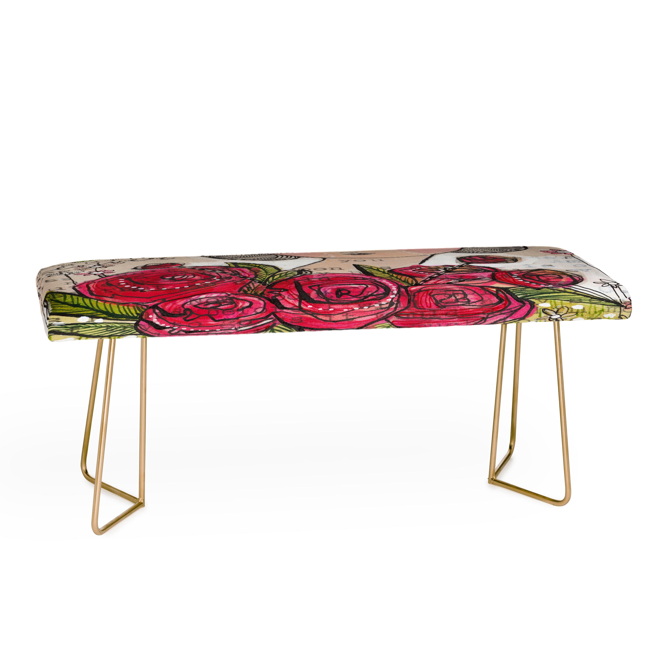 You may now approach the bench. The Deny Designs bench is the versatile furniture staple your space is missing. You can select from our curated designs to be featured on the wrapped, faux-leather seat. The sturdy yet minimalistic steel aston legs, available in gold or black, allow our benches to be seamlessly integrated into whatever decor style you fancy. Dress it up as chic dining room seating or dress it down as an entryway catch-all. And the best part? Every purchase pays the artist who designed it—supporting creativity worldwide.