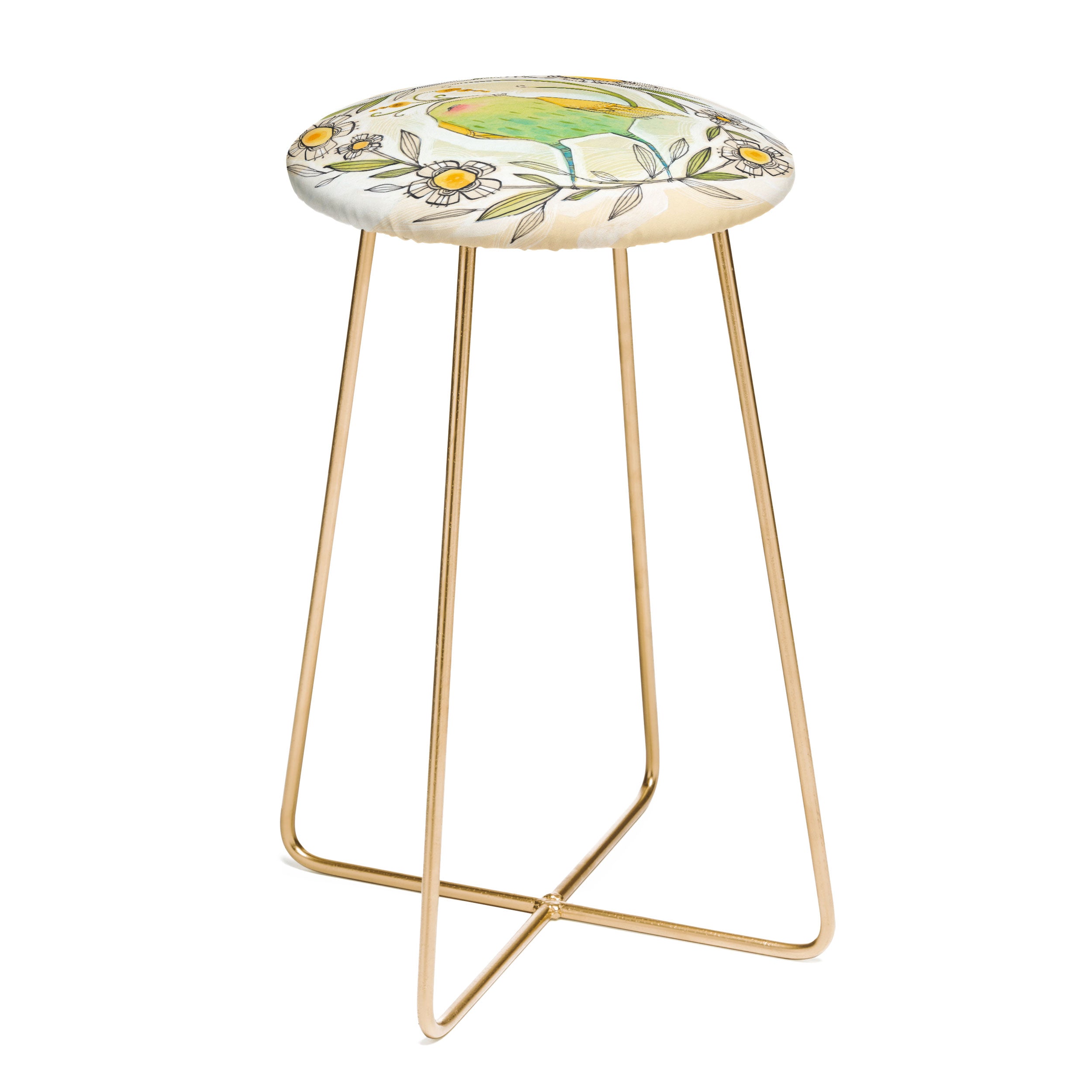 Saddle up, (little) partner. The Deny Designs counter stool uses all the space-conscious, design-forward styling of the bar stool, but with a slightly shorter frame. Sleek, gently curved steel aston legs (available in black or gold) combine with the faux-leather upholstery for a modern yet unassuming stool. Select from our curated array of designs to match whatever your taste may be. And the best part? Every purchase pays the artist who designed it—supporting creativity worldwide.