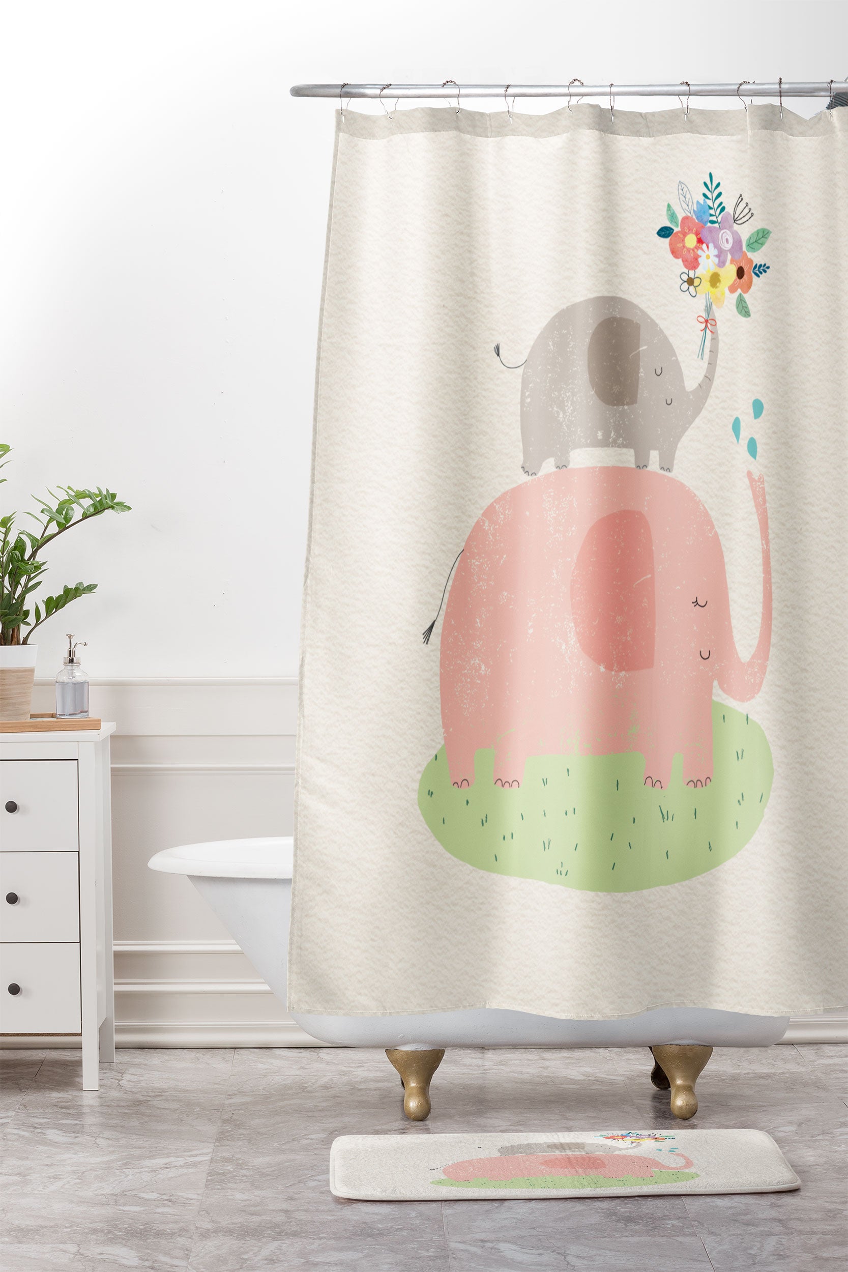 cory reid Elephants and flowers Shower Curtain And Mat