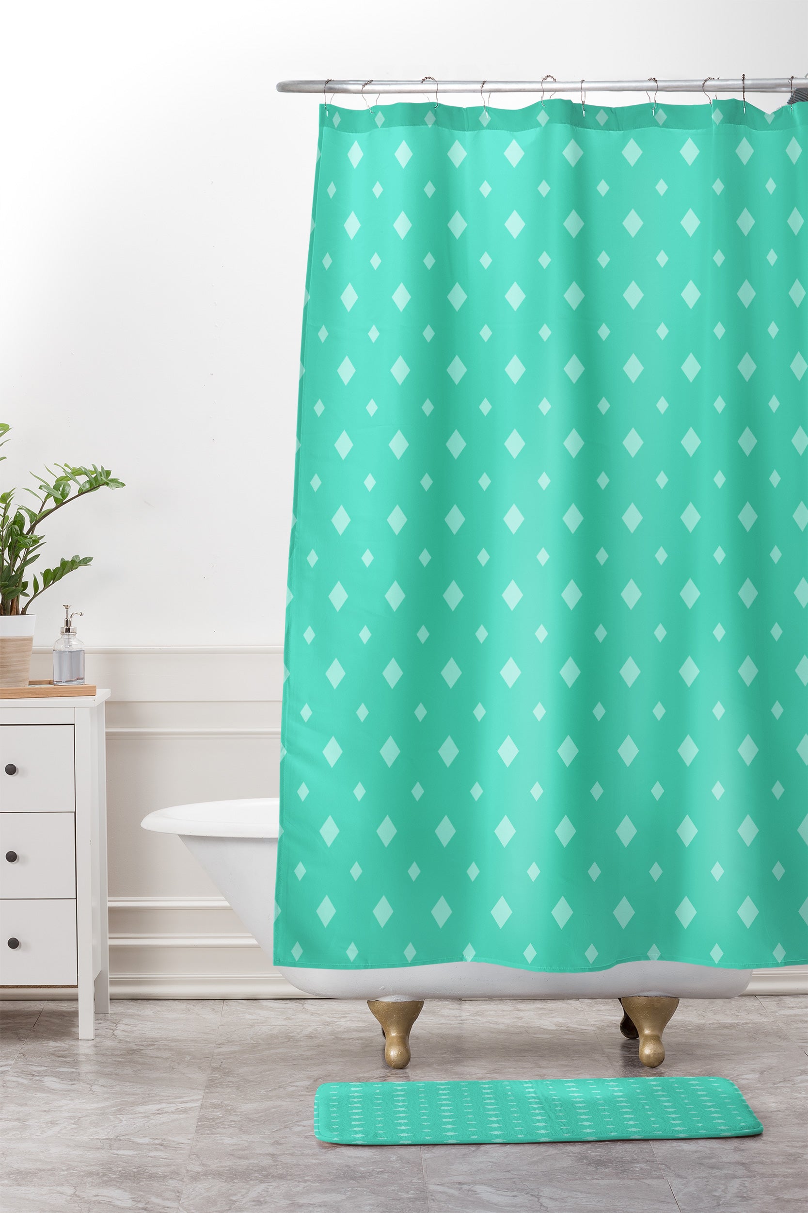 CraftBelly Twinkle Emerald Shower Curtain And Mat