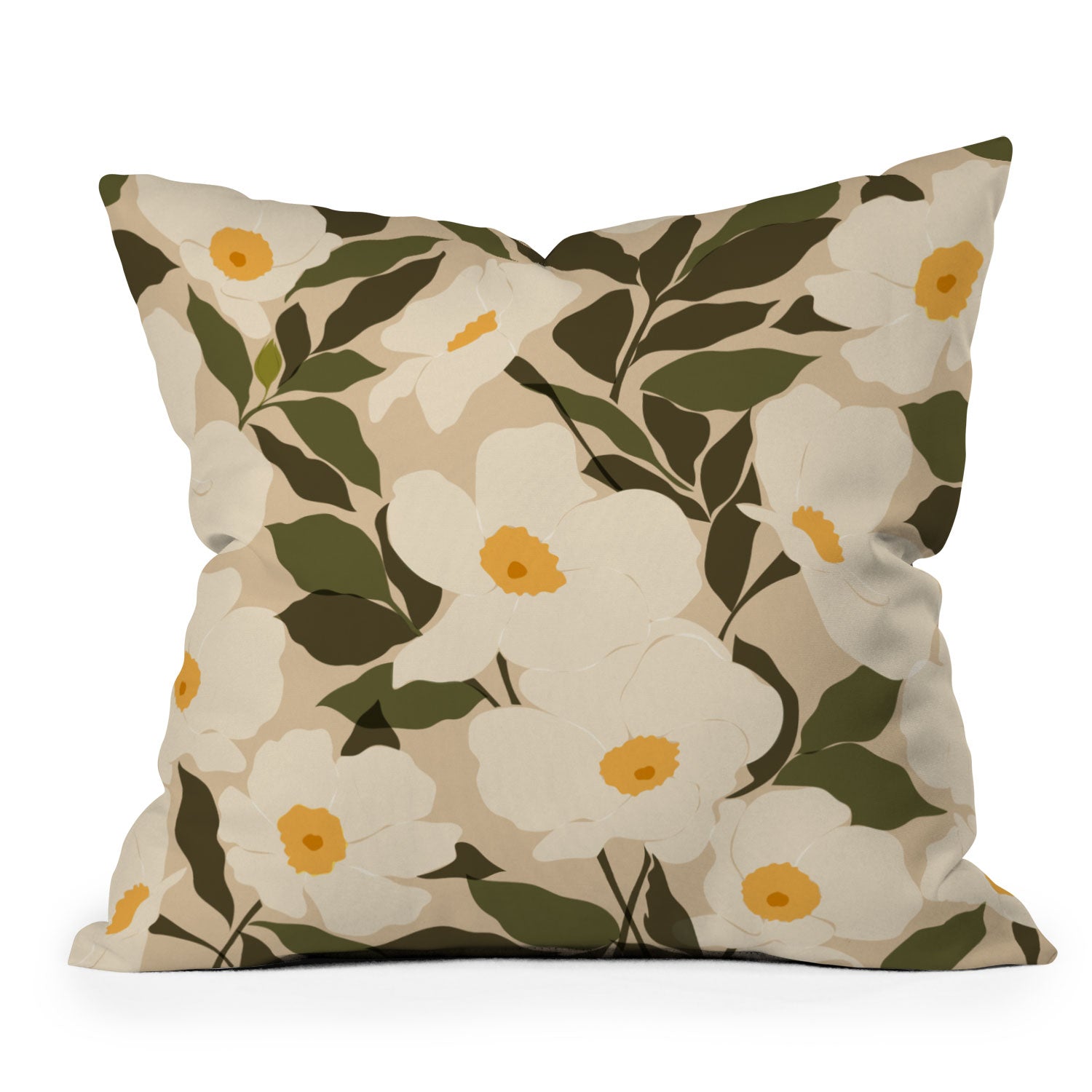 Cuss Yeah Designs Abstract White Wild Roses Outdoor Throw Pillow