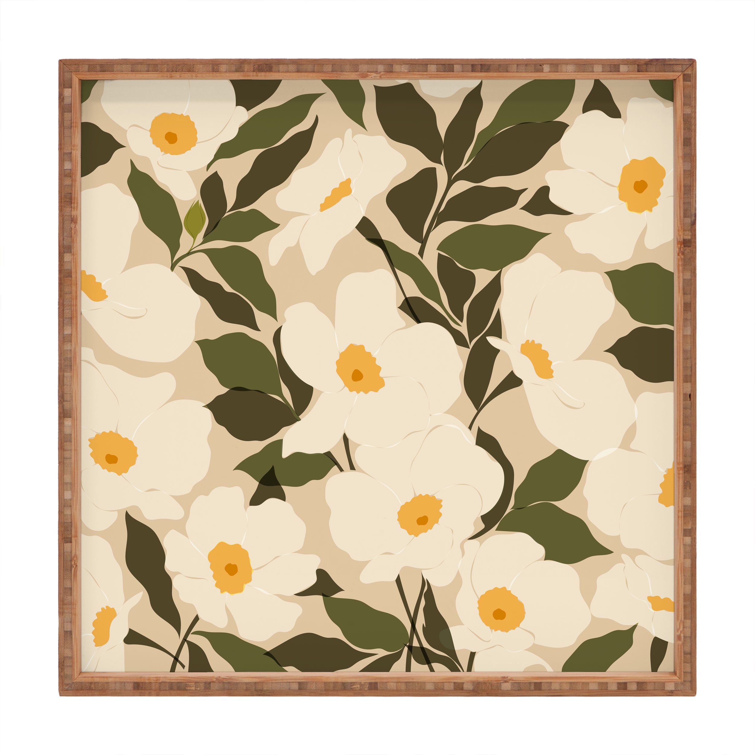 Cuss Yeah Designs Abstract White Wild Roses Square Tray