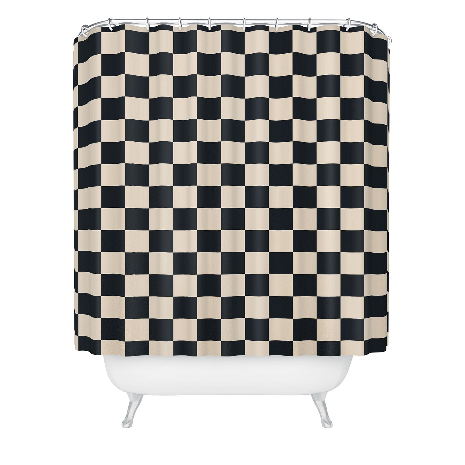 Cuss Yeah Designs Black Cream Checker Pattern Shower Curtain