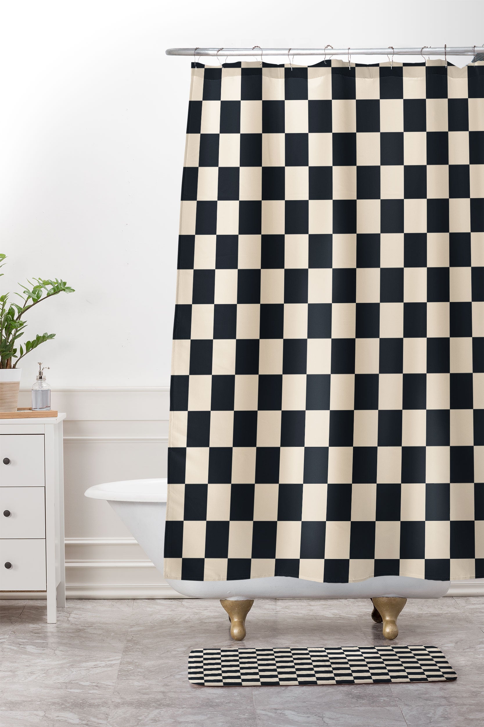 Cuss Yeah Designs Black Cream Checker Pattern Shower Curtain And Mat